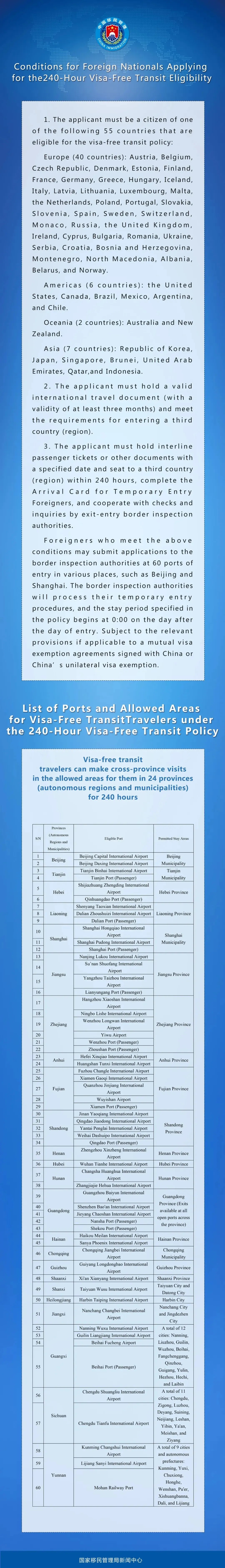 12th Jun 2025, The National Immigration Administration (NIA) announced today that, starting June 12, 2025, nationals of Indonesia may enter China under the 240-hour visa-free transit policy. This brings the total number of eligible countries to 55.